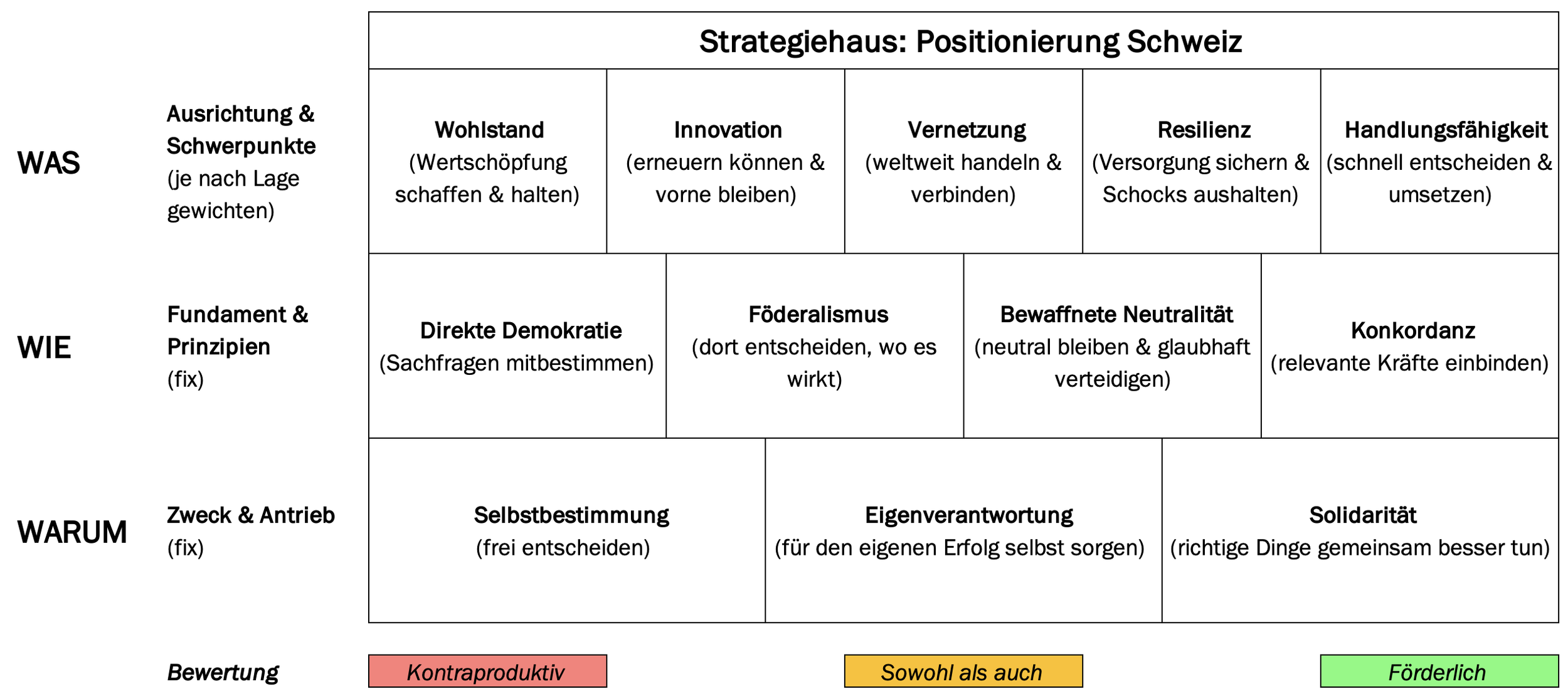 Das Strategiehaus: Ein Strategie-Kompass für die Schweiz.